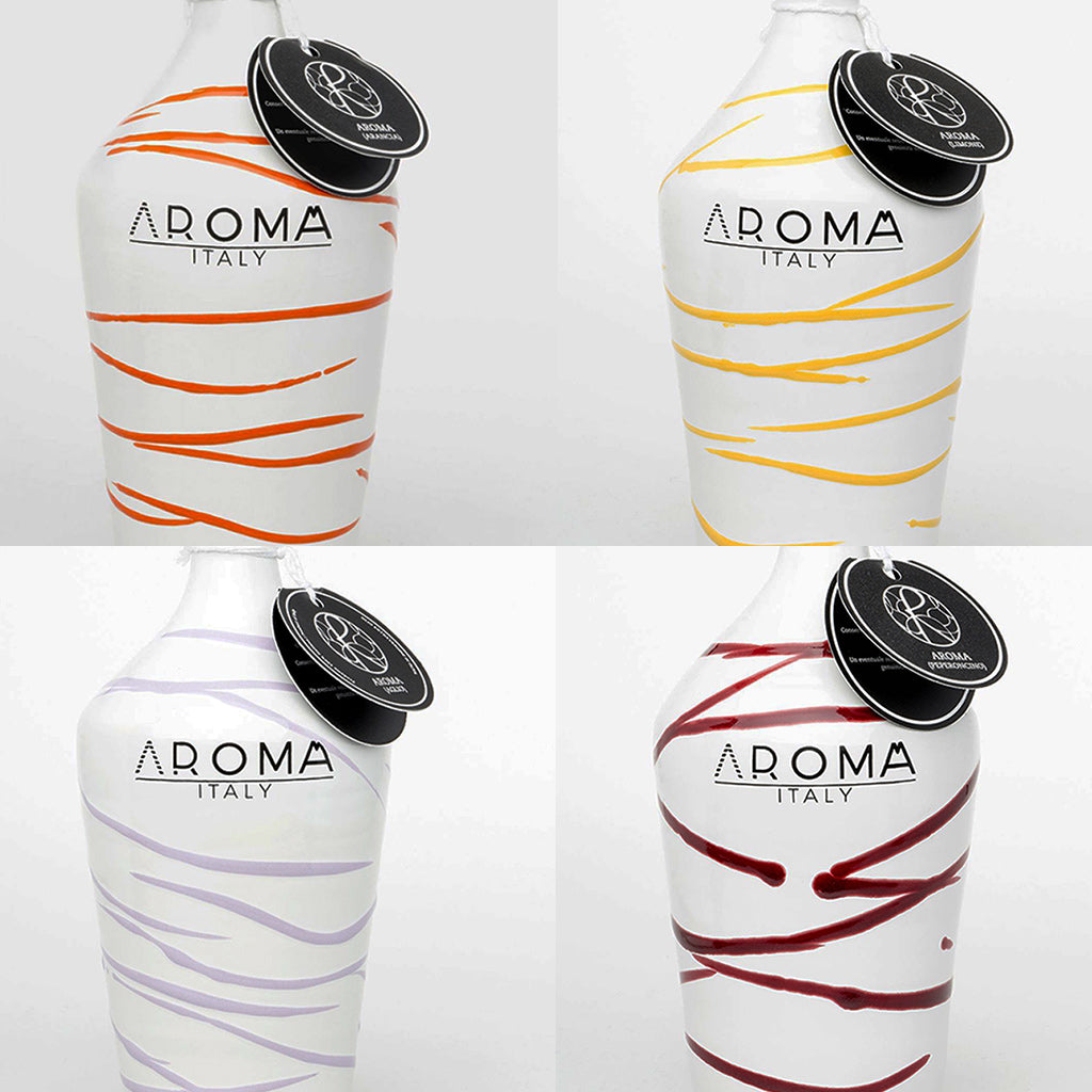 The Aroma Collection is a perfect example of a versatile oil in the kitchen with a robust and unmistakable flavours, ideal for any recipe containing garlic, chili, orange, or lemon. These condiments goes very well with any balsamic whether white, black, or fruity and is indispensable in various Mediterranean dishes. The jars are handmade ceramic.